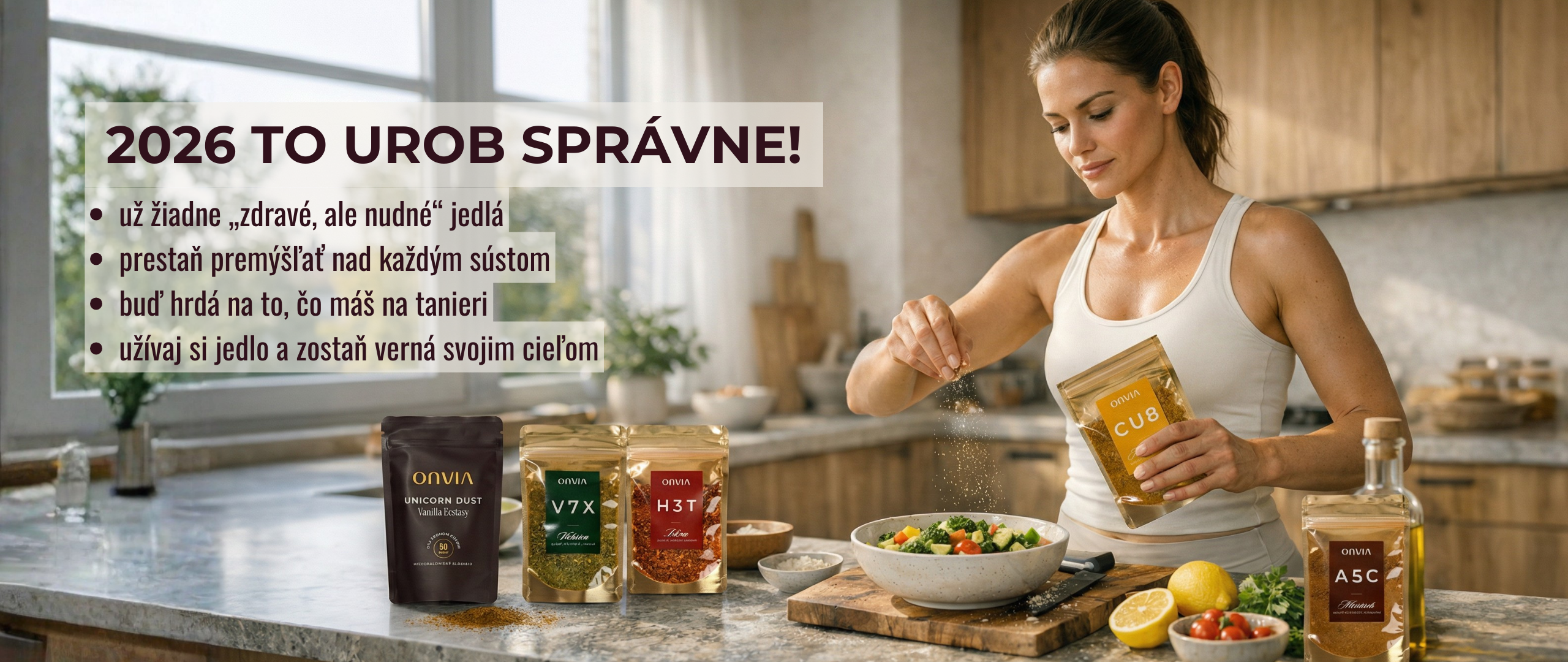 Žiť ONVIA znamená konať. Denné tréningy a zmeny myslenia v aplikácii. Denník, ktorý zlepšuje sústredenie. Koreniny a sladidlo, ktoré robia zdravé varenie radosťou. Oblečenie, v ktorom cítiš svoju silu. Hmatateľné nástroje pre životný štýl, ktorý konečne vydrží.