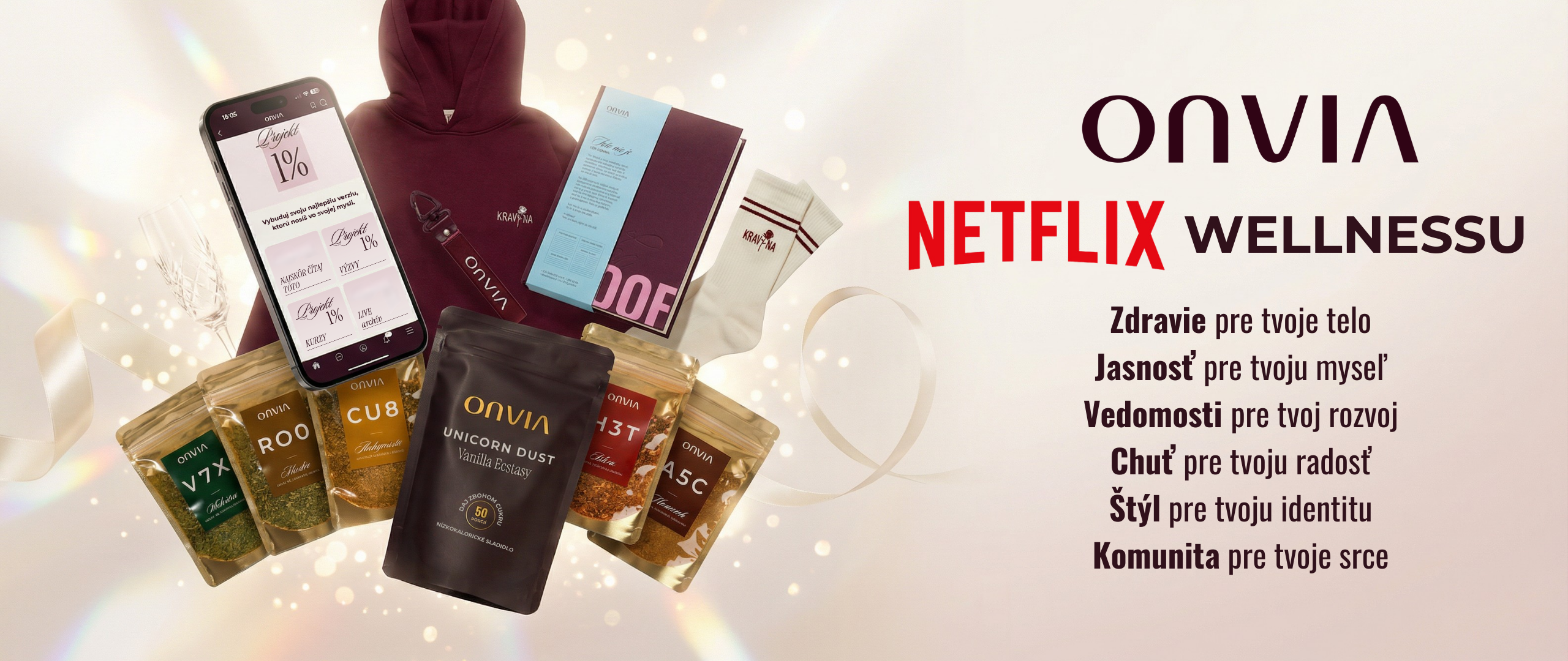 Väčšina platforiem predáva rýchle riešenia, zázračné skratky alebo sa zameriava len na jednu oblasť. ONVIA je holistický wellness vesmír - pohyb, výživa, mindset, regenerácia aj produkty pre každodenný život. Všetko prepojené, na jednom mieste. Žiadne skratky, žiadne KRAVINY. Len skutočné výsledky, ktoré vydržia.