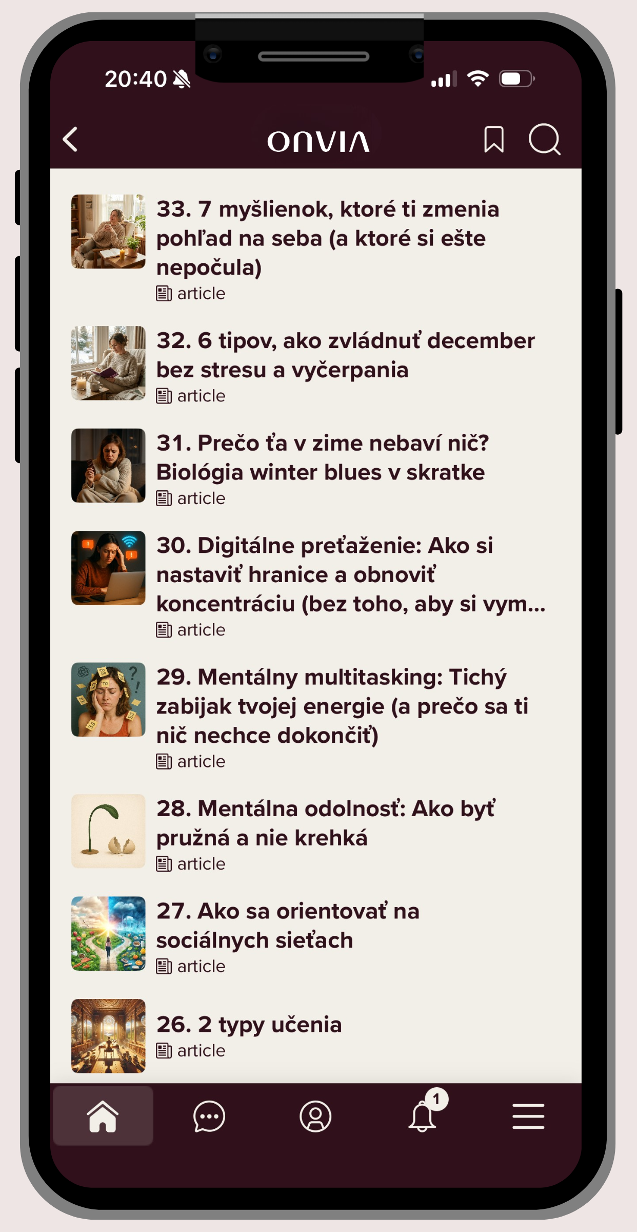 Samozrejme. Organizujeme exkluzívne eventy, priamo v appke aj naživo. Všetko je navrhnuté tak, aby si prehĺbila svoju cestu aj prepojenie s komunitou ONVIA.