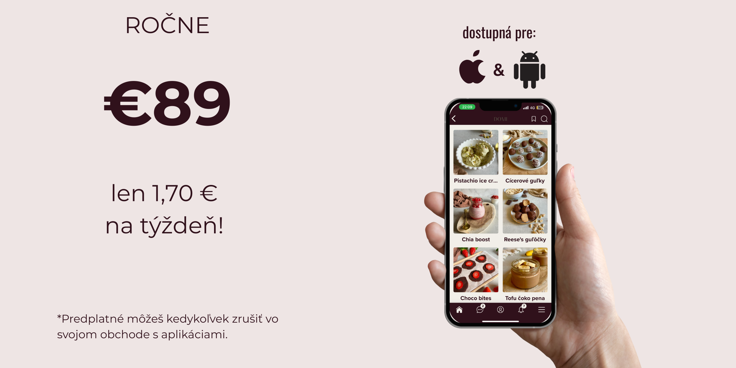 Veríme, že je to deal storočia. Za 9,90 € mesačne alebo 89 € ročne dostaneš všetko: video tréningy, video recepty, podcasty, vedené meditácie, blogy založené na najnovších vedeckých poznatkoch, štruktúrované kurzy, motivačné výzvy, exkluzívne benefity, priamy kontakt, dopravu zadarmo a silnú, podporujúcu komunitu. A to najlepšie? Aplikácia sa zlepšuje každý deň, vďaka tebe.
