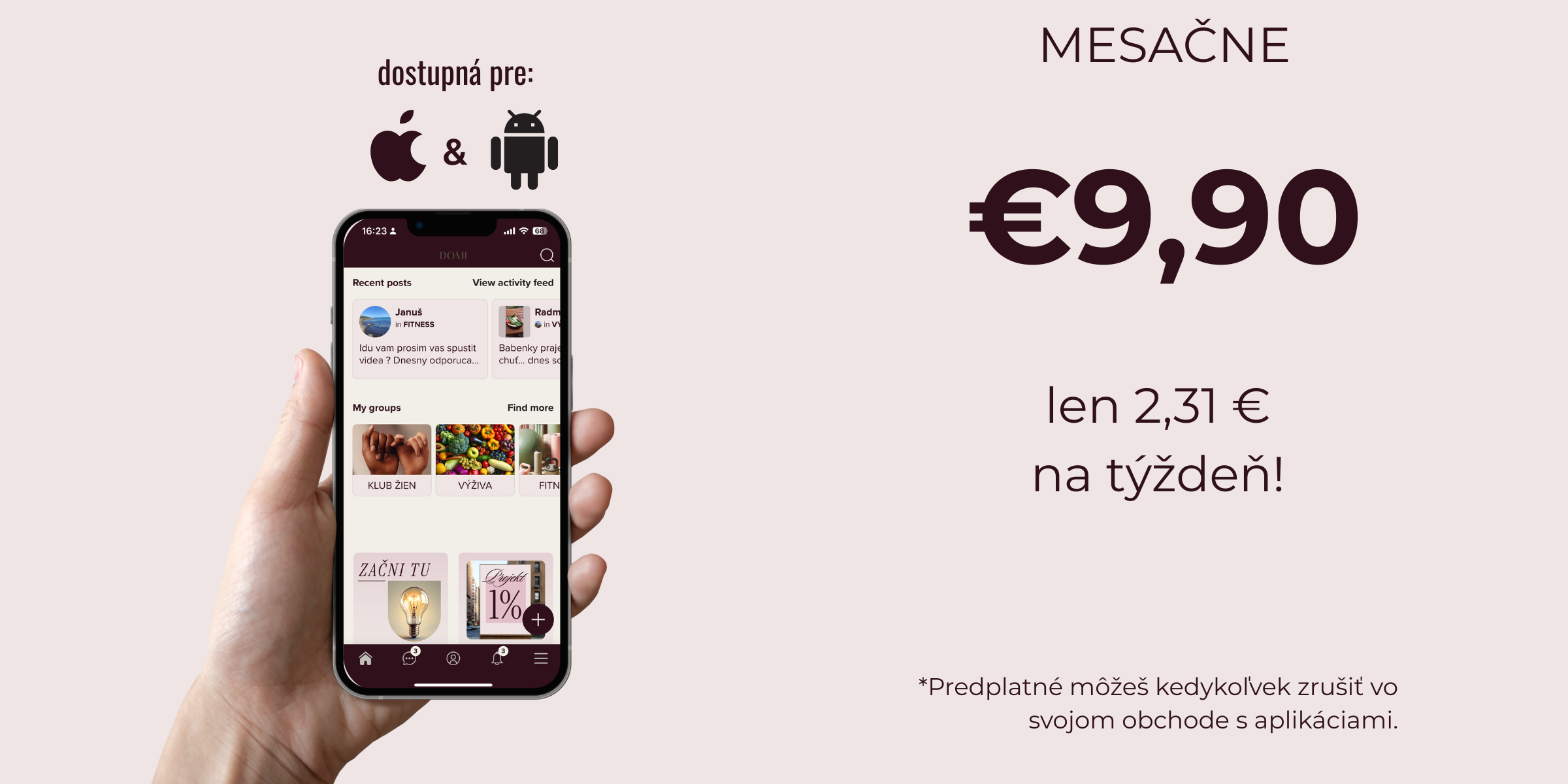 Áno! Rátaj s pravidelnými LIVE so mnou, kde ti prinesiem motiváciu, tipy a osobnejší prístup na tvojej ceste. A k tomu komunita žien v appke, ktoré ťa podrží na každom kroku.